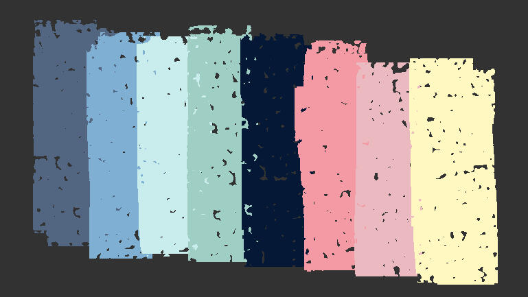 An image of the color palette is provided below. The hex codes are: #526682, #7FAFD2, #C9ECED, #9FCFC4, #051937, #F49AA5, #EBBAC0, #FFF9C1. All tints and shades of these eight colors will be accepted for artwork! Writers will be assigned 1-4 colors of their choice and write a fic corresponding to it, in whatever way that means for them.